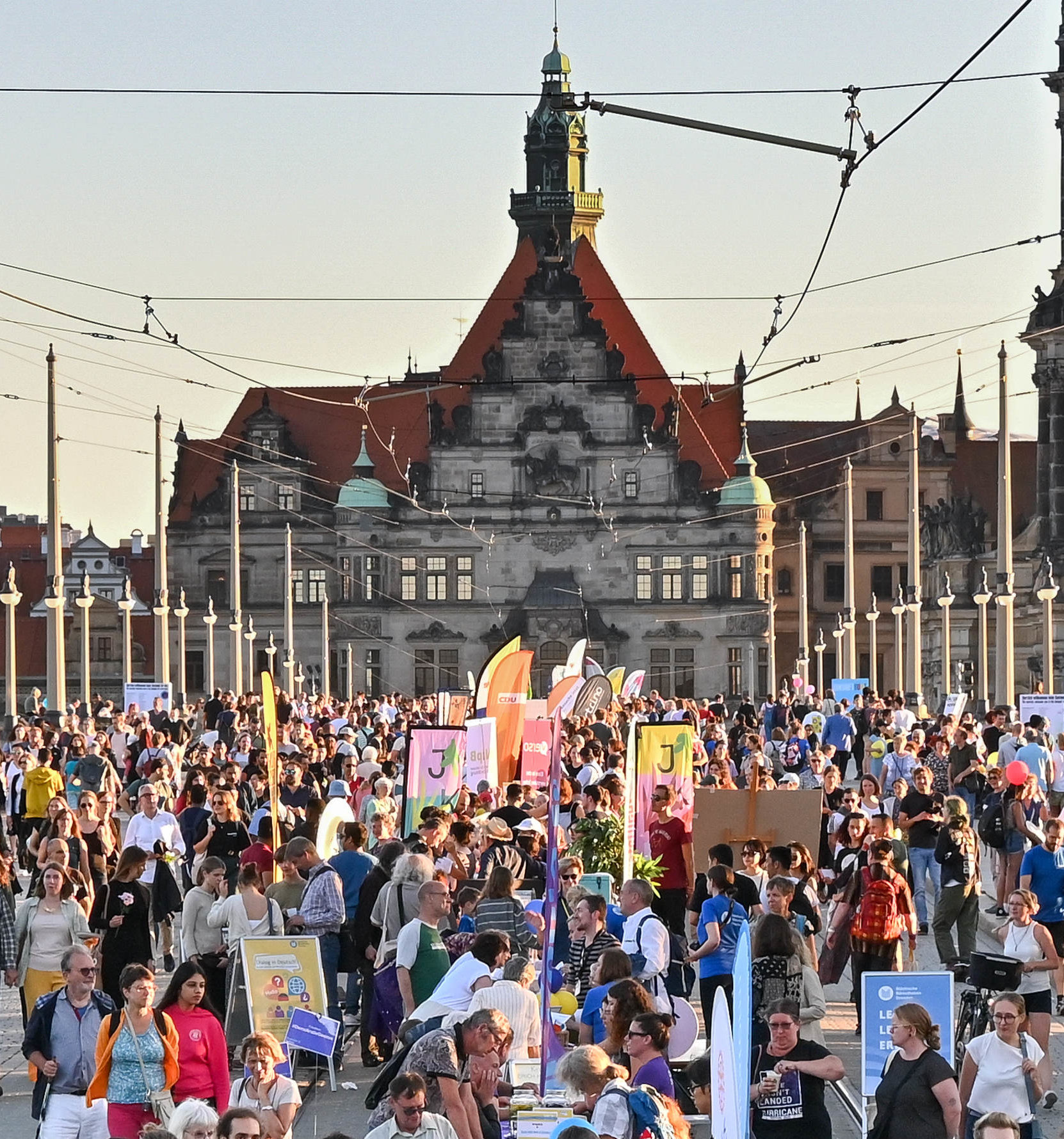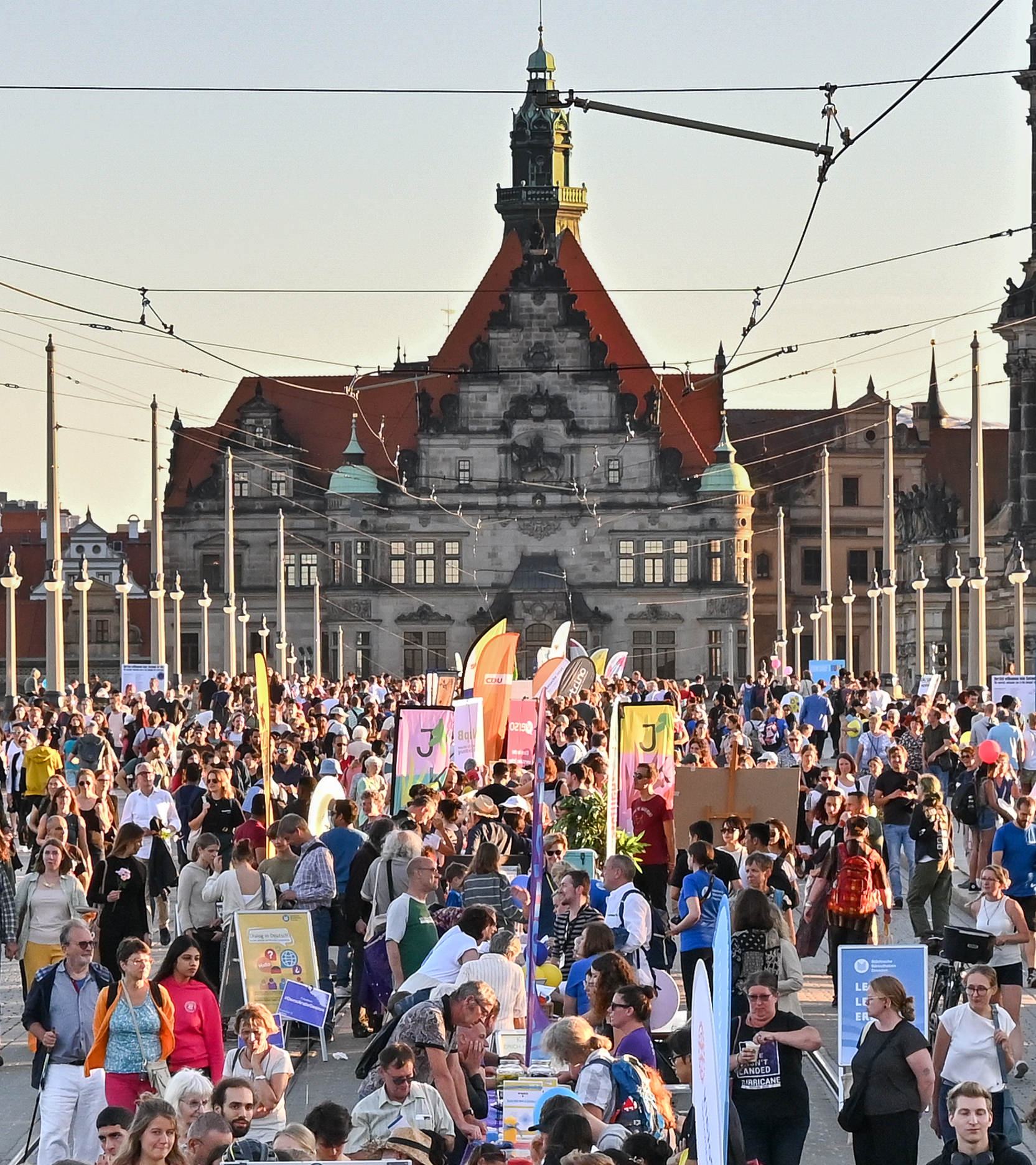 Dresden ist vielfältig, international und aufgeschlossen. Das hat sich gestern beim Gastmahl „Dresden is(s)t bunt“ im Stadtzentrum wieder einmal gezeigt. Bei strahlendem Sonnenschein haben wir mitten auf der historischen Augustusbrücke einen der rund 270 Tische bezogen, um mit uns mit Dresdnern und Touristen auszutauschen. Umgeben von Tanz und Musik und mit bestem Blick auf die historische Altstadtsilhouette.