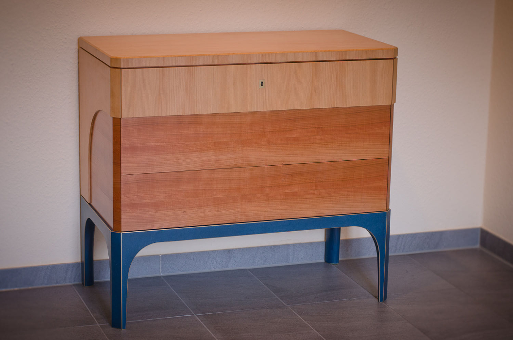 Paul Klotzsche hat von 2017 bis 2019 seine Tischlerausbildung bei den Deutschen Werkstätten absolviert. Auf Grund seiner guten Leistungen war er zum Kreativlehrgang nach Pirna entsendet worden, wo er auch sein Gesellenstück, eine Kommode aus Zedern- und Pflaumenholz mit eingelegten Messingadern, gefertigt hat. Derzeit nimmt Paul Klotzsche an einem Meistervorbereitungskurs der Dresdner Handwerkskammer teil und wird vermutlich kommenden Sommer seinen Meister machen. Weil ihm die Arbeit mit Massivholz besonders liegt, überlegt er, sich später in Richtung Restaurierung und Möbelfertigung von Einzelstücken selbständig zu machen.