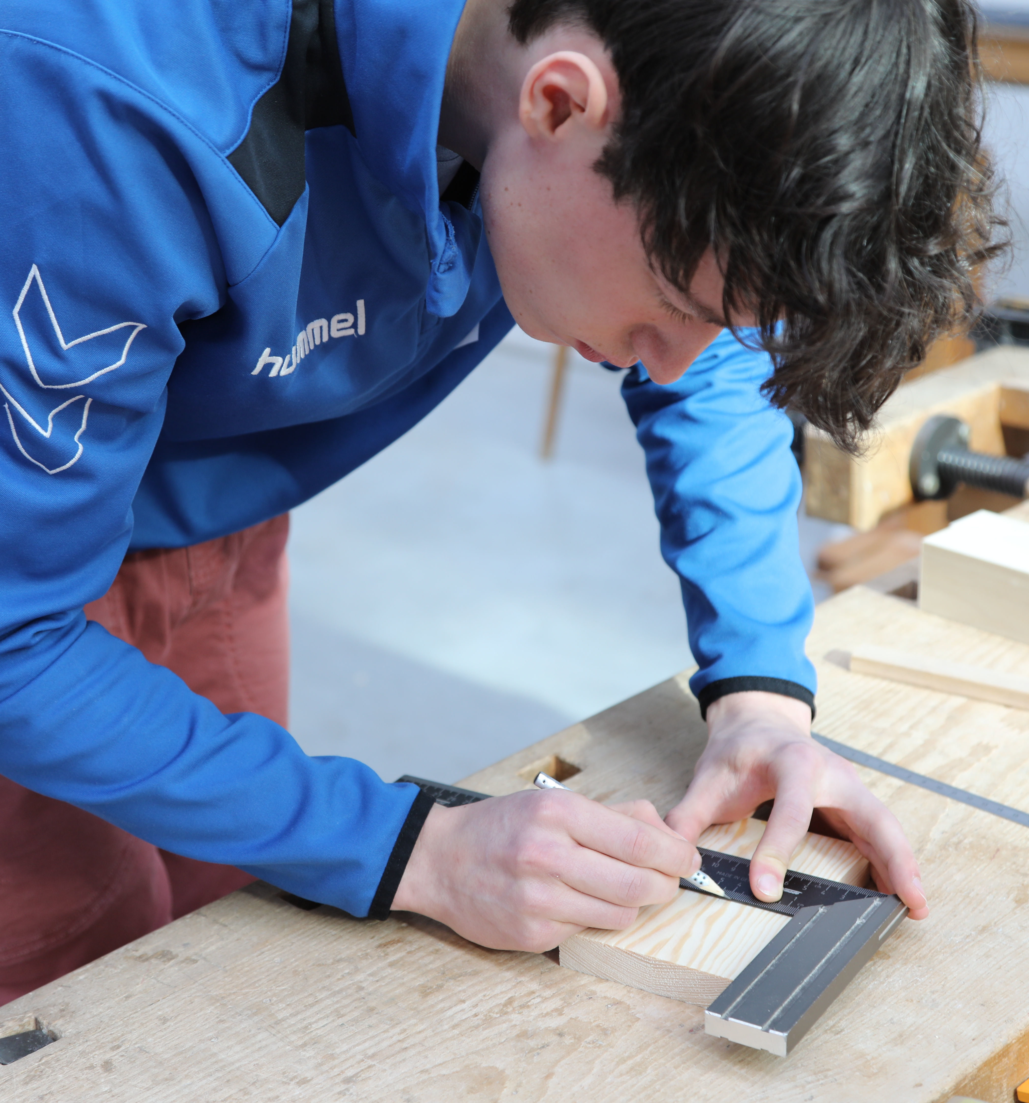 Wer bei den Deutschen Werkstätten eine Ausbildung zur Tischlerin oder zum Tischler beginnen möchte, muss sein Können vorab bei einem Eignungstest unter Beweis stellen. Denn das Interesse an der exzellenten Ausbildung ist seit jeher groß. In diesem Jahr sind für die 7 Plätze rund 120 Bewerbungen aus ganz Deutschland eingegangen. Knapp 60 Kandidat*innen sind zu den derzeit laufenden Tests nach Hellerau eingeladen worden.