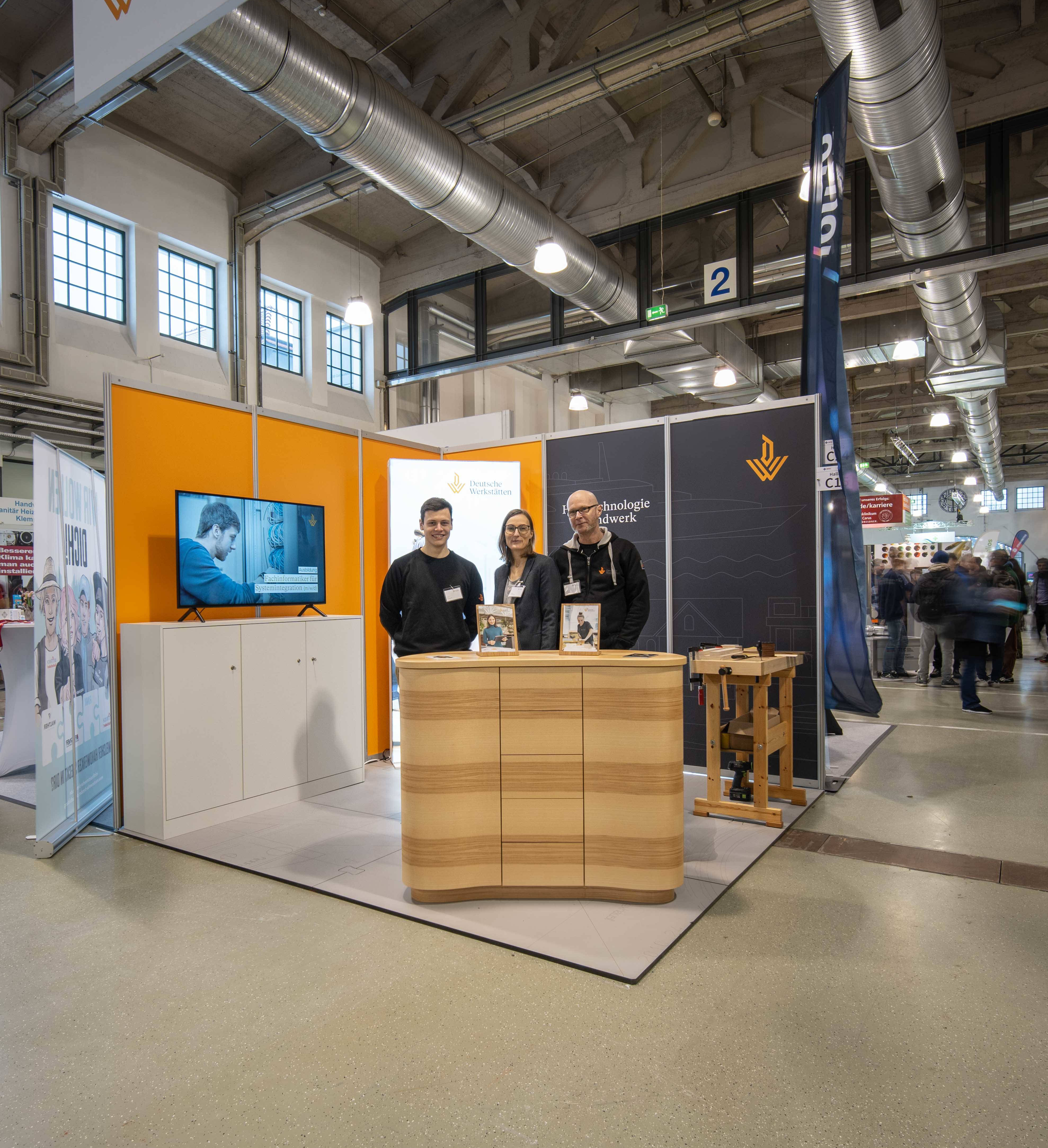 Die Tischler-Ausbildung ist beliebt wie eh und je. Das haben wir heute zum Beginn der Dresdner Ausbildungsmesse Karrierestart erneut gespürt. An unserem Stand C-15 in Halle 2 konnten wir vielen interessierten Jugendlichen die Besonderheiten unserer Ausbildung erklären. Unser Lehrmeister, der unseren Azubis im ersten Jahr komplett die Grundlagen beibringt, war selbst mit auf der Messe vor Ort.