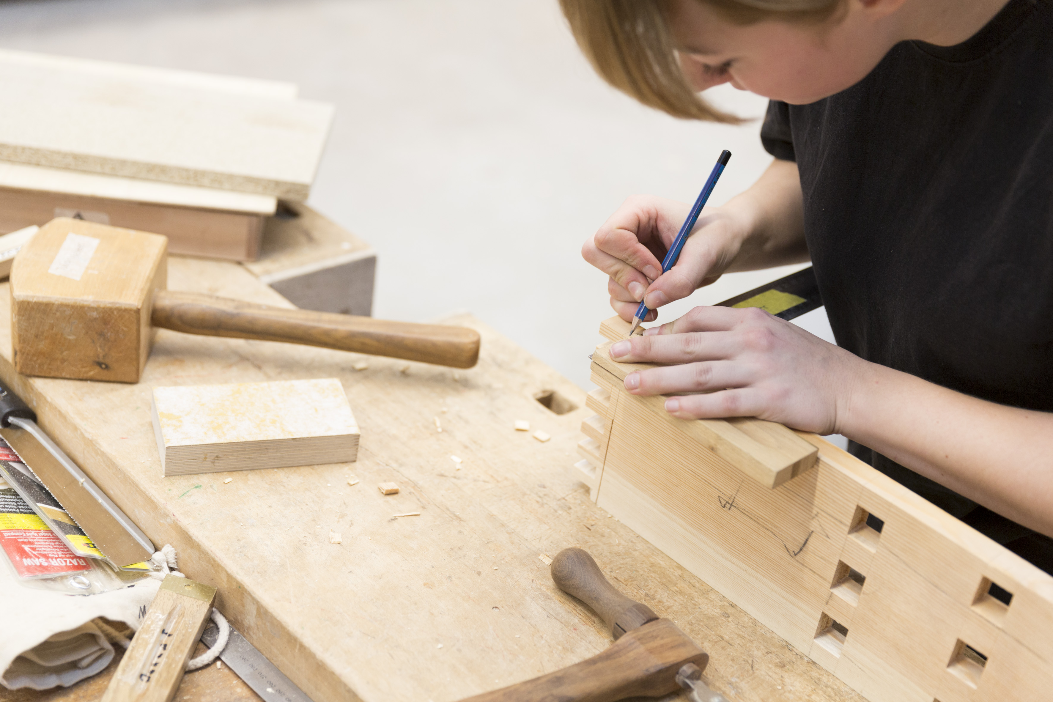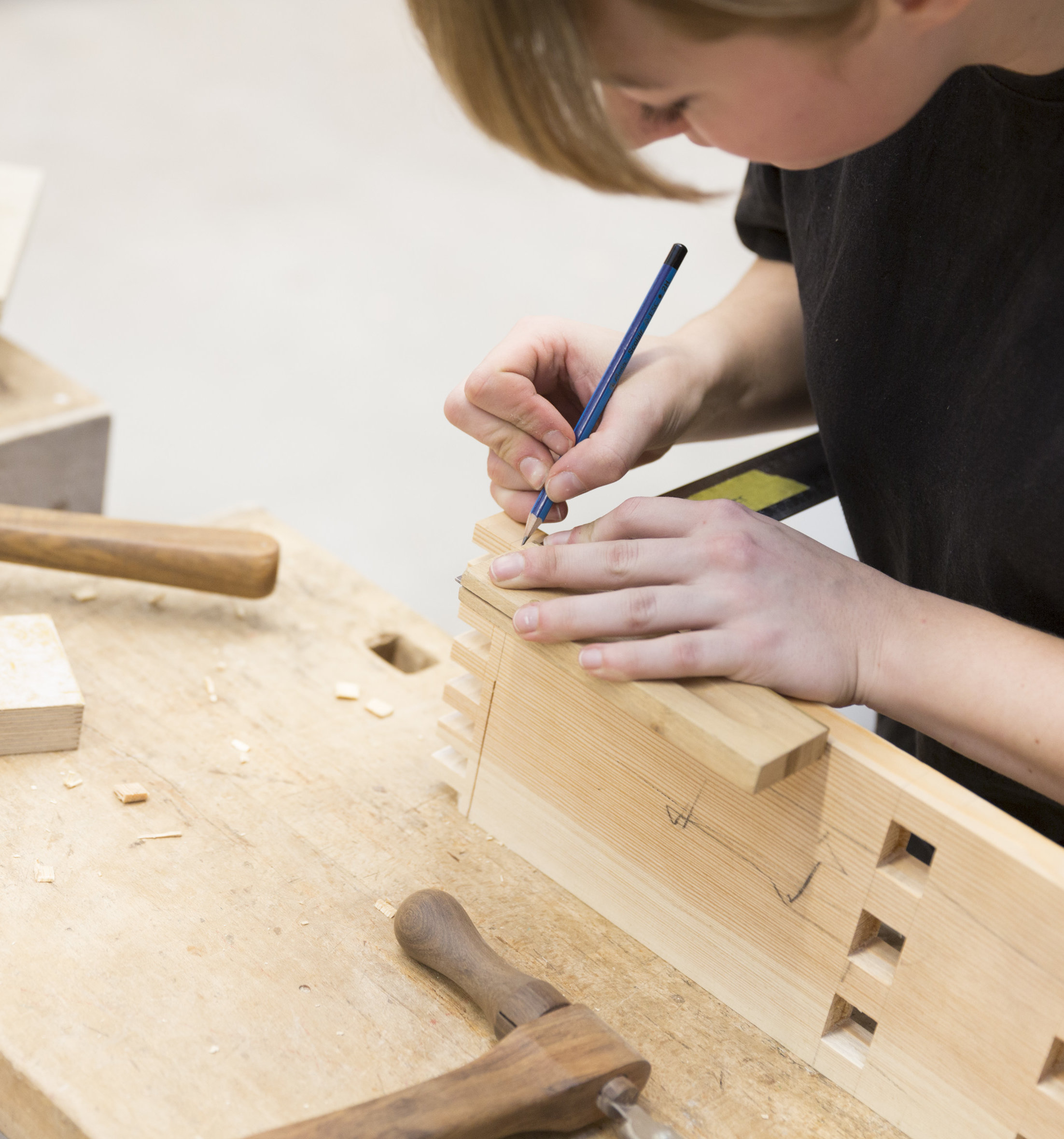 Seit der Unternehmensgründung 1898 bilden die Deutschen Werkstätten jährlich mehrere Tischler*innen aus. Im ersten Lehrjahr der Ausbildung, die deutschlandweit einen exzellenten Ruf genießt, lernen die Auszubildenden in der hauseigenen Lehrwerkstatt vom eigenen Lehrmeister die handwerklichen Grundlagen. Später erwerben sie die Kenntnisse im Umgang mit den Maschinen und werden in die Projekte mit einbezogen. Mitunter wird auch ein Auslandsaufenthalt geplant oder sie nehmen an unserem Lehrlingsaustausch teil.