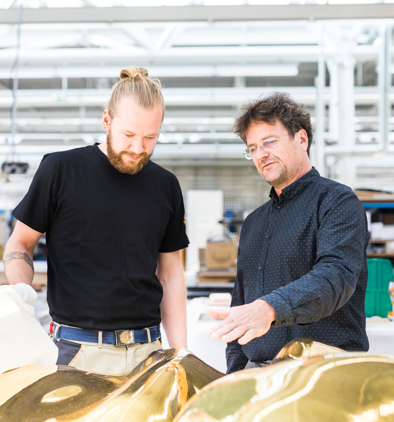 Ein wesentlicher Grundsatz der Deutschen Werkstätten ist: „Weiterentwicklung muss sein!“ Deshalb gibt es keinen Auftrag und keine Problemstellung, bei der das Unternehmen sagen würde: Das geht nicht. Jan Jacobsen hält das für eines der prägendsten Kennzeichen der hochtechnisierten Manufaktur Deutsche Werkstätten: Sie läuft zur Hochform auf bei schwierigen Problemstellungen, bei denen zu Beginn – und oft auch bei Vertragsabschluss – noch nicht klar ist, wie und mit welchem Aufwand sie zu lösen sind. „Lass es uns doch mal ausprobieren“ – das ist die Grundhaltung. Dazu benötigt das Unternehmen Mitarbeiter, die sich auf scheinbar riskante Aufträge einlassen, die über langjährige Erfahrung mit ungewöhnlichen Materialien und Formen verfügen und die jeweils aktuellste Technologie anwenden, die bei der Problemlösung hilft. Im Labor der Abteilung Forschung und Entwicklung wird geforscht, und wenn es die passende Software nicht gibt, wird sie eben entwickelt.