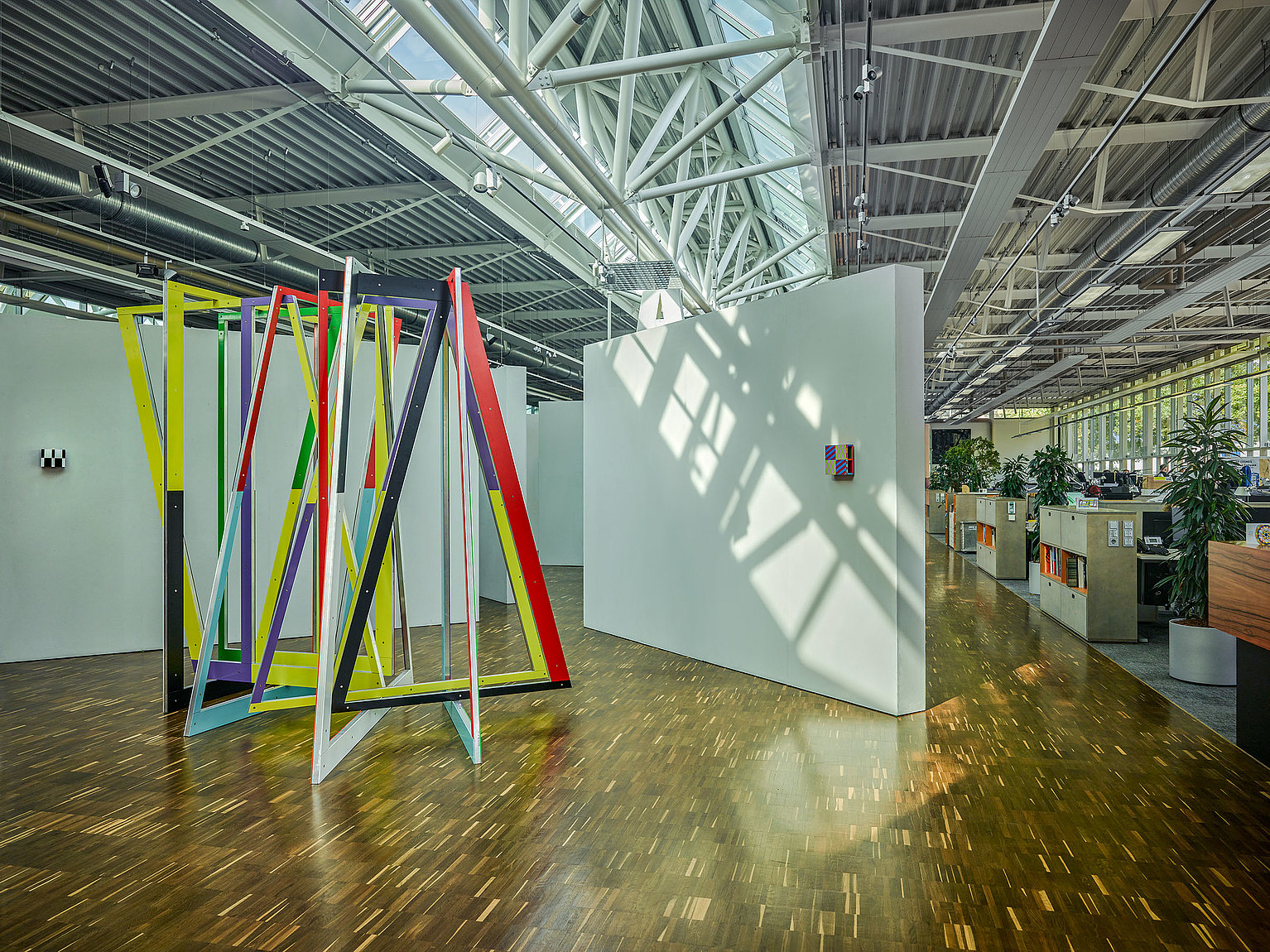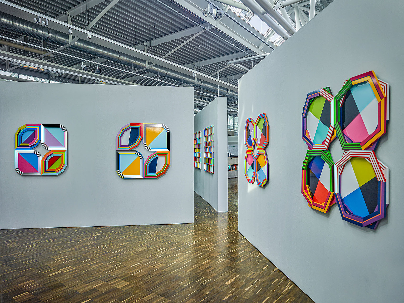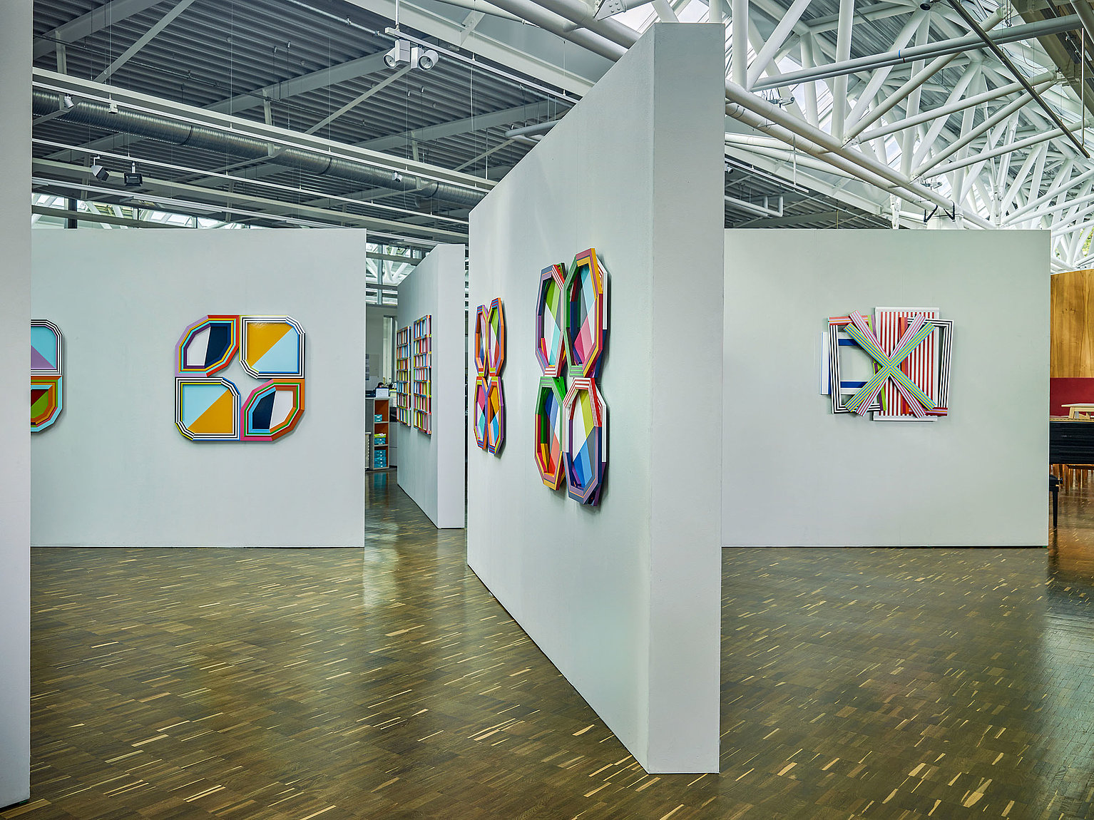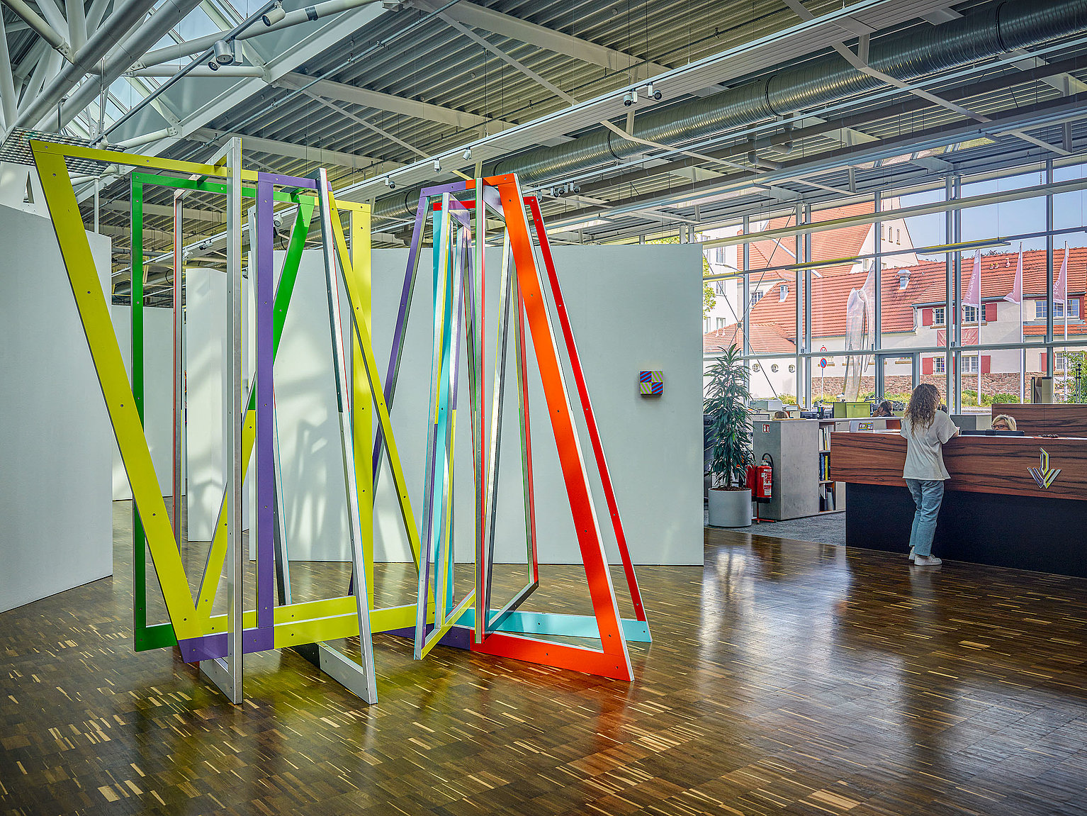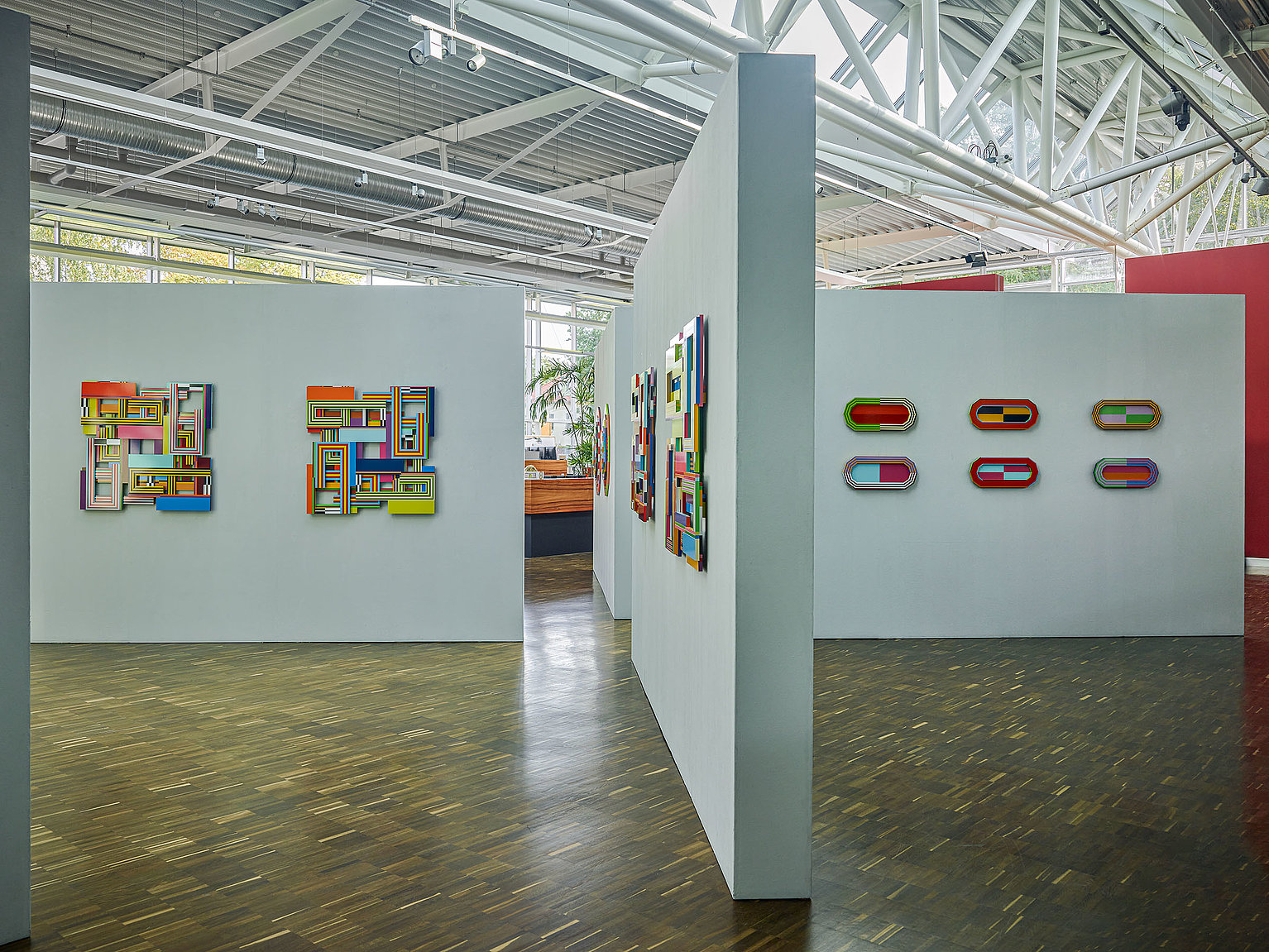 Vom 5.10.-15.12.2023 ist in der Hellerauer Werkstättengalerie eine Ausstellung mit Werken des Berliner Künstlers Dieter Balzer zu sehen. Er wurde 1958 in Neuhofen/Pfalz geboren und arbeitet heute in Berlin. Farbe und Geometrie seiner Bilder entwickeln bei der Betrachtung eine herausragende Intensität. Die Werke strahlen, brechen Regeln, ordnen Räume neu und nehmen die Betrachter*innen in neue Dimensionen mit. Copyright Foto: Dieter Balzer