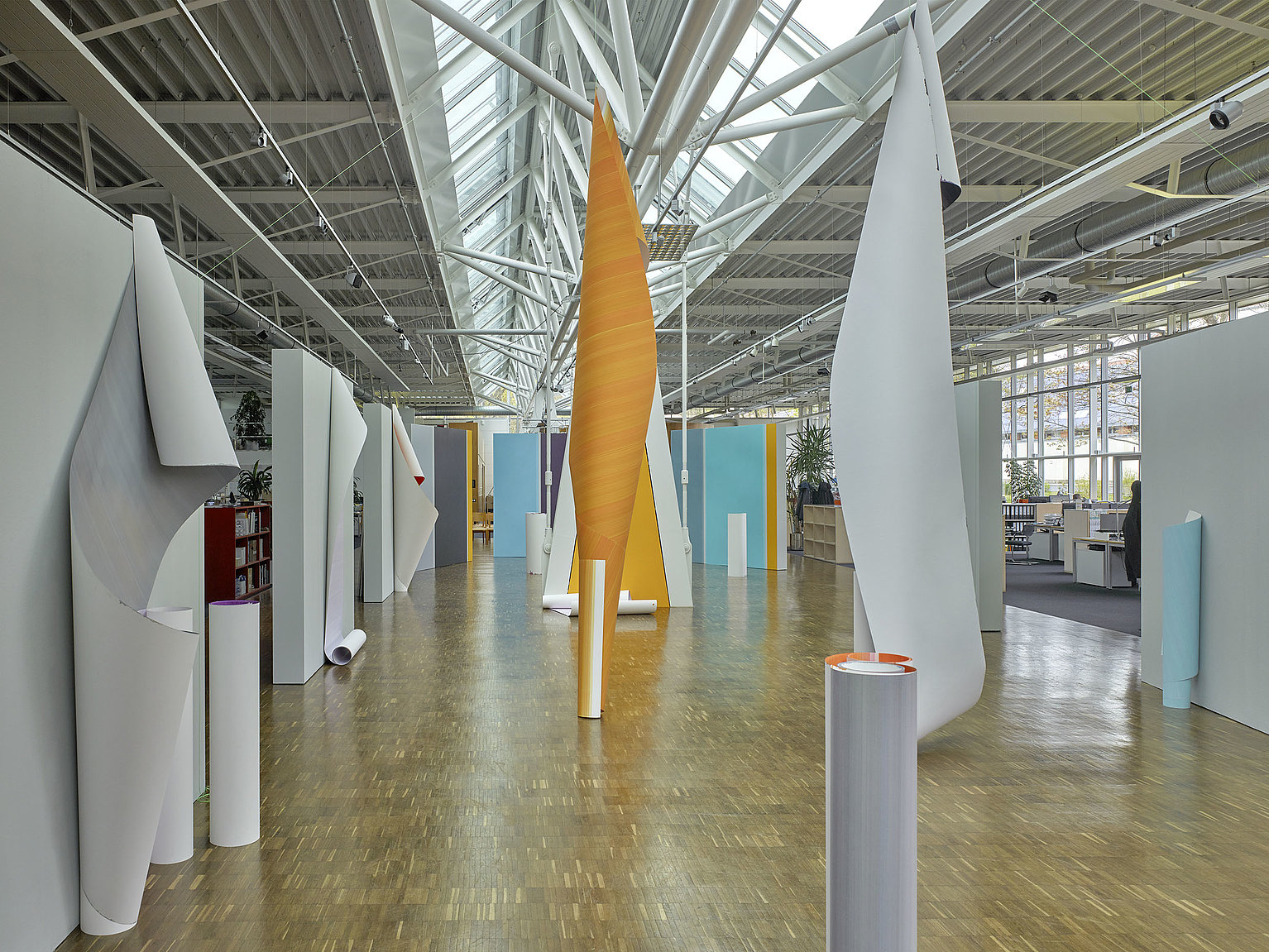 Der Titel Passacaglia (ursprünglich ein spanischer Tanz der Spätrenaissance) spricht zentrale Aspekte von Elisabeth Sonnecks Arbeit an: die rhythmische Organisation der Farbe ..., das häufige Motiv der Passage in ihren ortsspezifischen Arbeiten und die temporäre, veränderliche Erfahrung von Farbe.