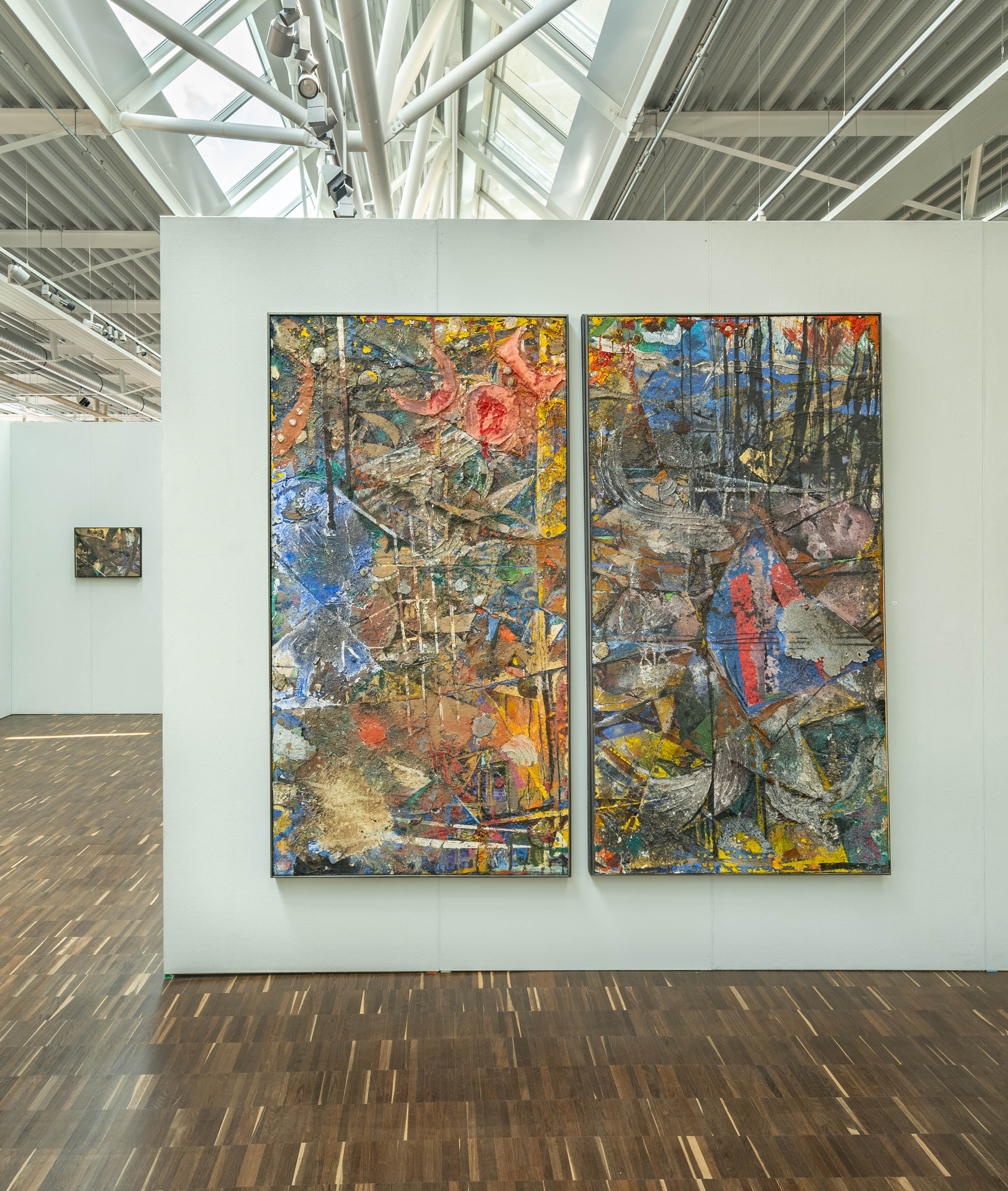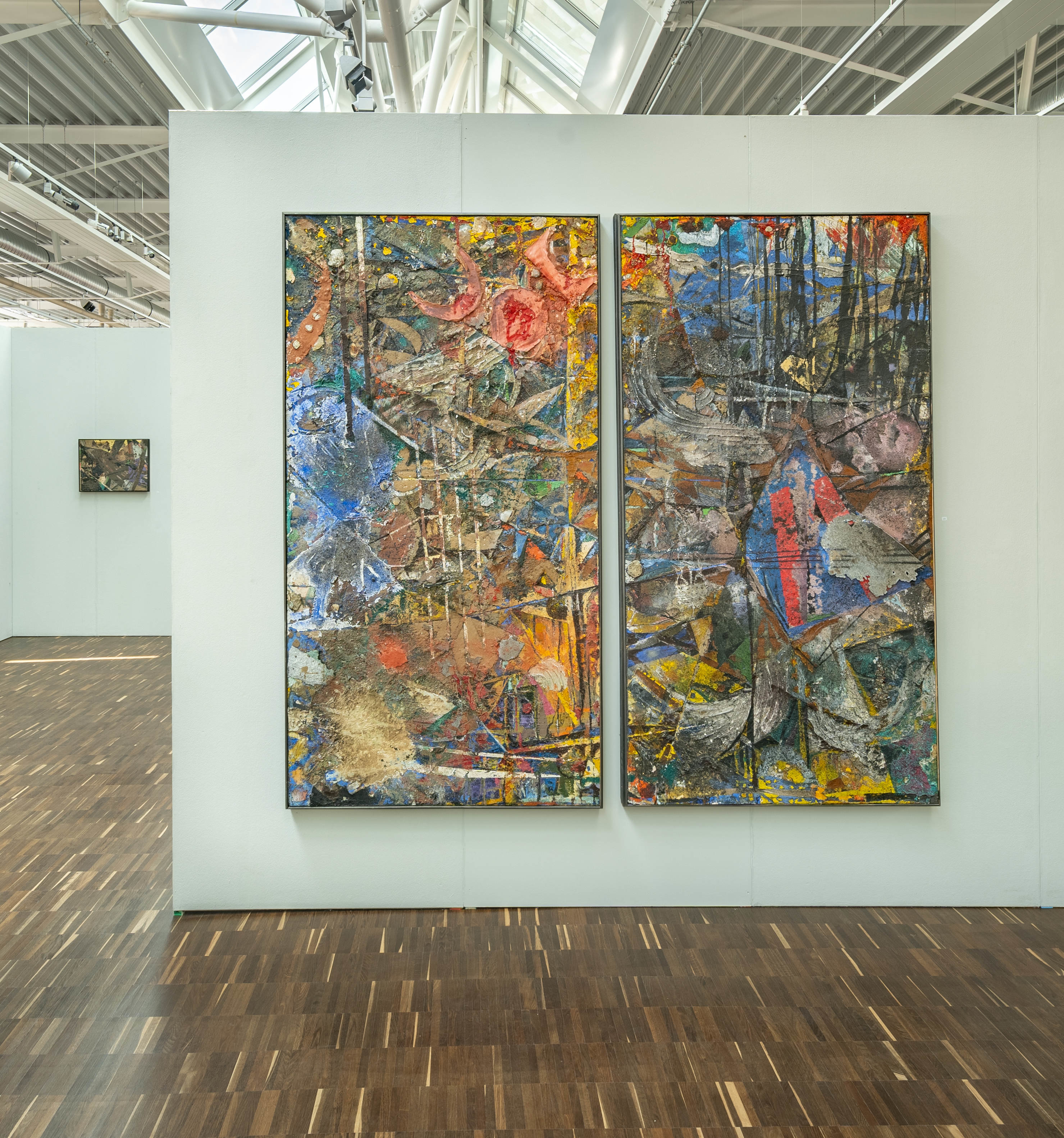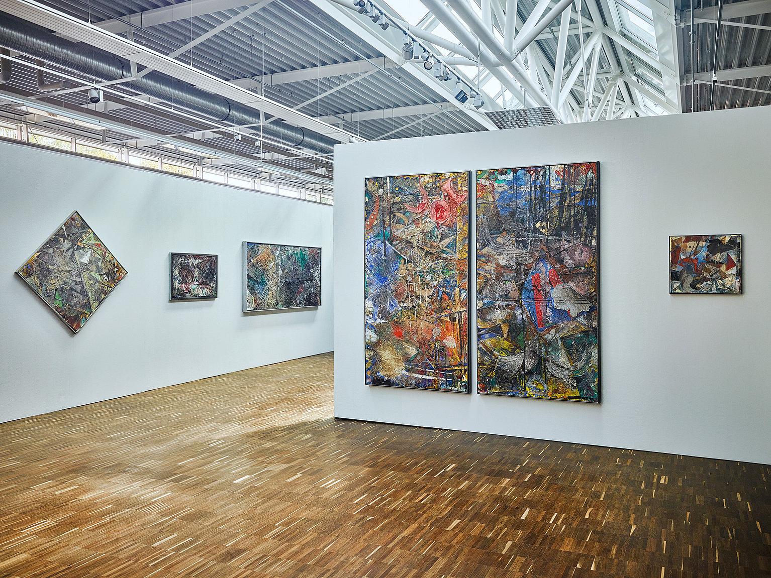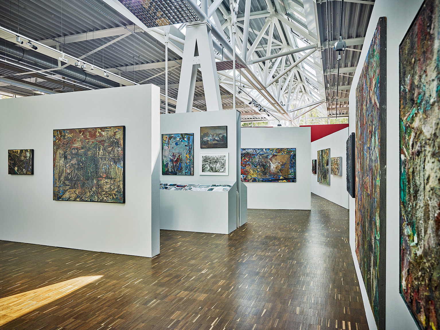 ...Präsentiert werden Malereien und Arbeiten auf Papier. Verblüffend kontrastreiche Kompositionen vielschichtiger Malereien stehen neben formbewussten, auf die Quintessenz konzentrierte Zeichnungen: eine energie- und emotionsgeladene Bilderwelt. Für den Künstler war sein Bilderkosmos ein Gleichnis für Existenzielles in Natur und Gesellschaft.“