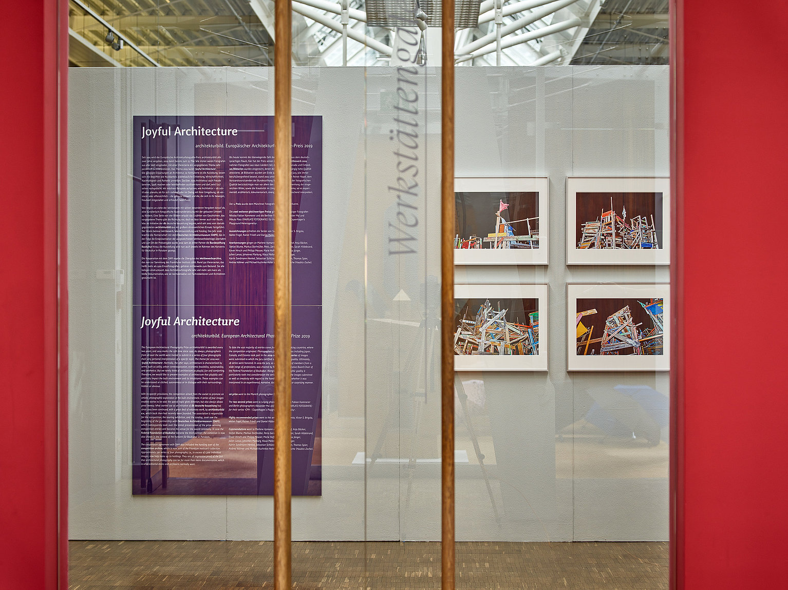 „Der Europäische Architekturfotografe-Preis architekturbild wird seit 1995 alle zwei Jahre ausgeschrieben, seit 2003 vom gemeinnützigen Verein architekturbild e.v., der seit 2008 mit dem Deutschen Architekturmuseum DAM, Frankfurt am Main, und seit 2016 mit der Bundesstiftung Baukultur, Potsdam/Berlin, kooperiert. Das Thema 2019 lautet »Joyful Architecture«. Die gängigen Erwartungen an Architektur lassen sich mit Begriffen wie Nutzbarkeit, städtebauliche Einbettung, Wirtschaftlichkeit, Nachhaltigkeit und Ästhetik umreißen. Darüber, dass Architektur auch Wohlbefinden auslösen, Freude bereiten und Spaß machen kann und darf, wird (viel zu) selten nachgedacht. Wir möchten Beispiele aufspüren, wie Architektur – ob subtil oder plakativ, ob für sich stehend oder im Dialog mit ihrer Umgebung, ob versteckt oder offensichtlich – die gebaute Umwelt und diejenigen, die sich in ihr bewegen, freudvoll mitgestaltet und positiv beeinflusst. Mit dem ersten Preis ausgezeichnet wurde die Serie von Dirk Härle. Zwei weitere Preise erhielten Nikolas Fabian Kammerer und Alexander Mai und Mikula Platz. Außerdem wurden fünf Auszeichnungen sowie 20 Anerkennungen vergeben.“