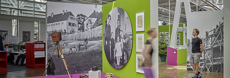 Das heute bekannte fotografische Werk von Rudolf Stich umfasst 198 Glasplatten-Negative 9x12cm, sowie 78 Kunststoff-Negative in unterschiedlichen Formaten. In der Ausstellung sind 45 Fotografien zu sehen, bis auf zwei alle von Glasplatten und in vier Themenbereiche eingeteilt: