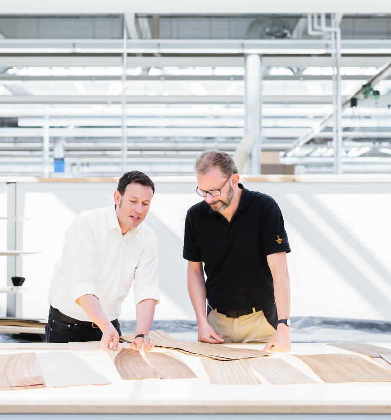 Ronny Neumann, Leiter der Abteilung Einkauf bei den Deutschen Werkstätten, kennt die Entwicklung des Unternehmens, die Konsequenzen haben muss: „Die Projekte werden immer spezieller und größer, was dazu führt, dass die Lieferanten durchaus an ihre Grenzen stoßen.“ Für die Projekteinkäufer bedeutet das weitergehende Spezialisierung. Die Einkaufsabteilung bildet Materialgruppen, denen sich Experten exklusiv widmen. Facheinkäufer für Glas und Spiegel, für Metalle, für Leder und Stoffe. Fachleute, die jederzeit über Neuheiten auf dem Laufenden sind, neue Lieferanten suchen und finden, beziehungsweise auf das Niveau der Deutschen Werkstätten neugierig machen.